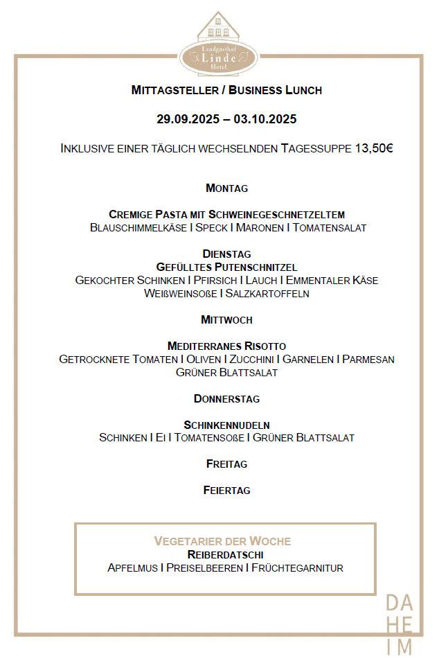 Die umliegende Landschaft eignet sich ideal zum Wandern und Radfahren. Verschiedene Routen sind vom Landgasthof Hotel Linde gut erreichbar. Die historische Altstadt und das LEGOLAND® Deutschland Resort erreichen Sie mit dem Auto in wenigen Minuten.