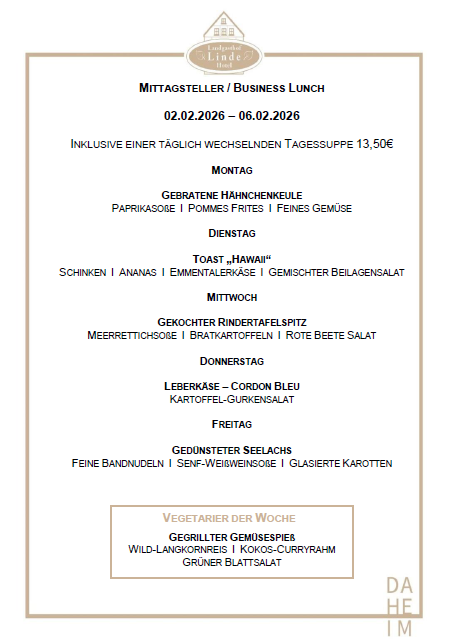 Einen Gutschein vom Landgasthof Hotel Linde können Sie für unser ToGo-Angebot, für eine Übernachtung, einen Restaurant Besuch oder unser Sauna-Angebot einlösen.