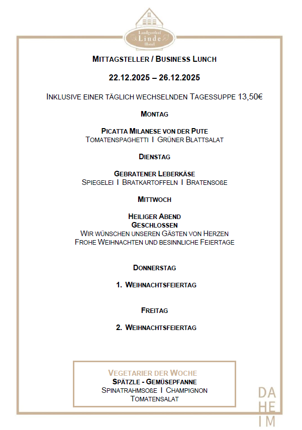 Am 25.12.2025 und 26.12.2025 haben wir von 11:00 - 15:00 Uhr für Sie geöffnet.